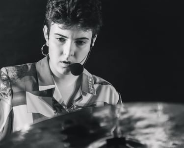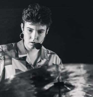 Originaire de Perpignan, Alice ECHAROUX est une batteuse au talent exceptionnel. Alors qu’elle se dirigeait initialement vers une classe de violon, elle réalise finalement son rêve en optant pour la batterie. Avec quinze ans d’expérience et une solide formation en musique actuelle au conservatoire de sa ville, elle explore sans relâche tous les styles musicaux. Sa passion et son énergie font d'elle un atout précieux dans l'aventure MASTAR, où sa fraîcheur illumine chaque performance. En parallèle, elle accompagne divers projets, notamment Vénus (cover), Soon (composition) et Bruyère (composition).