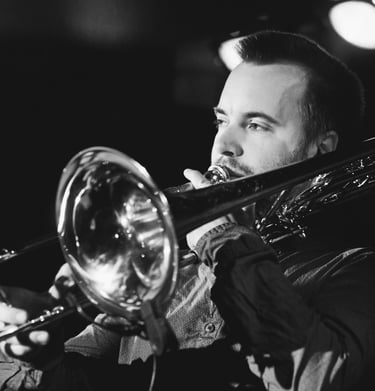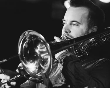 Jérémy CHAMPAGNE débute son parcours musical au conservatoire de Montpellier, où il s’initie au hautbois classique. Son esprit curieux et touche-à-tout l'oriente rapidement vers des horizons plus audacieux, notamment la scène punk alternative. Cet éclectisme lui permet d'embrasser une diversité musicale allant du classique au funk, en passant par la musique traditionnelle occitane et les sonorités cubaines et balkaniques. Son amour pour le trombone l’a conduit à plonger dans l'univers du jazz, faisant de lui un musicien aux multiples talents. En tant que facteur « X » du projet MASTAR, Jérémy change d’instrument à chaque morceau, apportant ainsi une richesse sonore unique. Dans la pré-production de l’EP, il se distingue aux côtés d'instruments variés, tels que la conque, le tuba ténor, et bien sûr, son hautbois classique. Son approche innovante défi le modèle d’ultra-spécialisation inhérent au jazz.