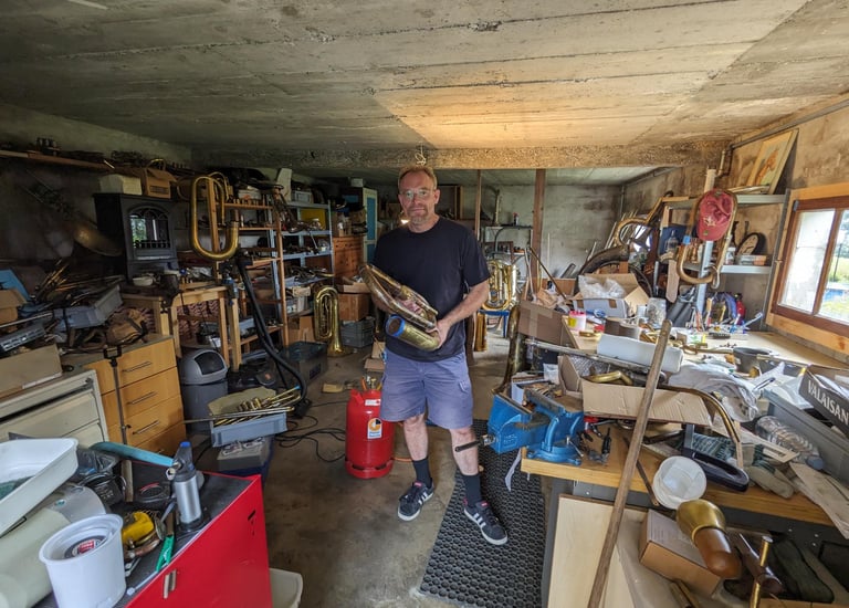 La réussite de la conception du Sulliphone a convaincu Pierrick Mastras et Tim Sullivan de poursuivre leur collaboration autour d’un nouvel instrument d’exception : un mellophone en mi bémol, inspiré du modèle rare joué par Don Elliott (1926–1984 - multi-instrumentiste et arrangeur américain reconnu pour son approche novatrice du jazz et ses expérimentations sonores audacieuses). Cet instrument enrichie la palette orchestrale de MASTAR, en renforçant encore la diversité des timbres et la complémentarité entre les registres graves et intermédiaires explorés sur scène.